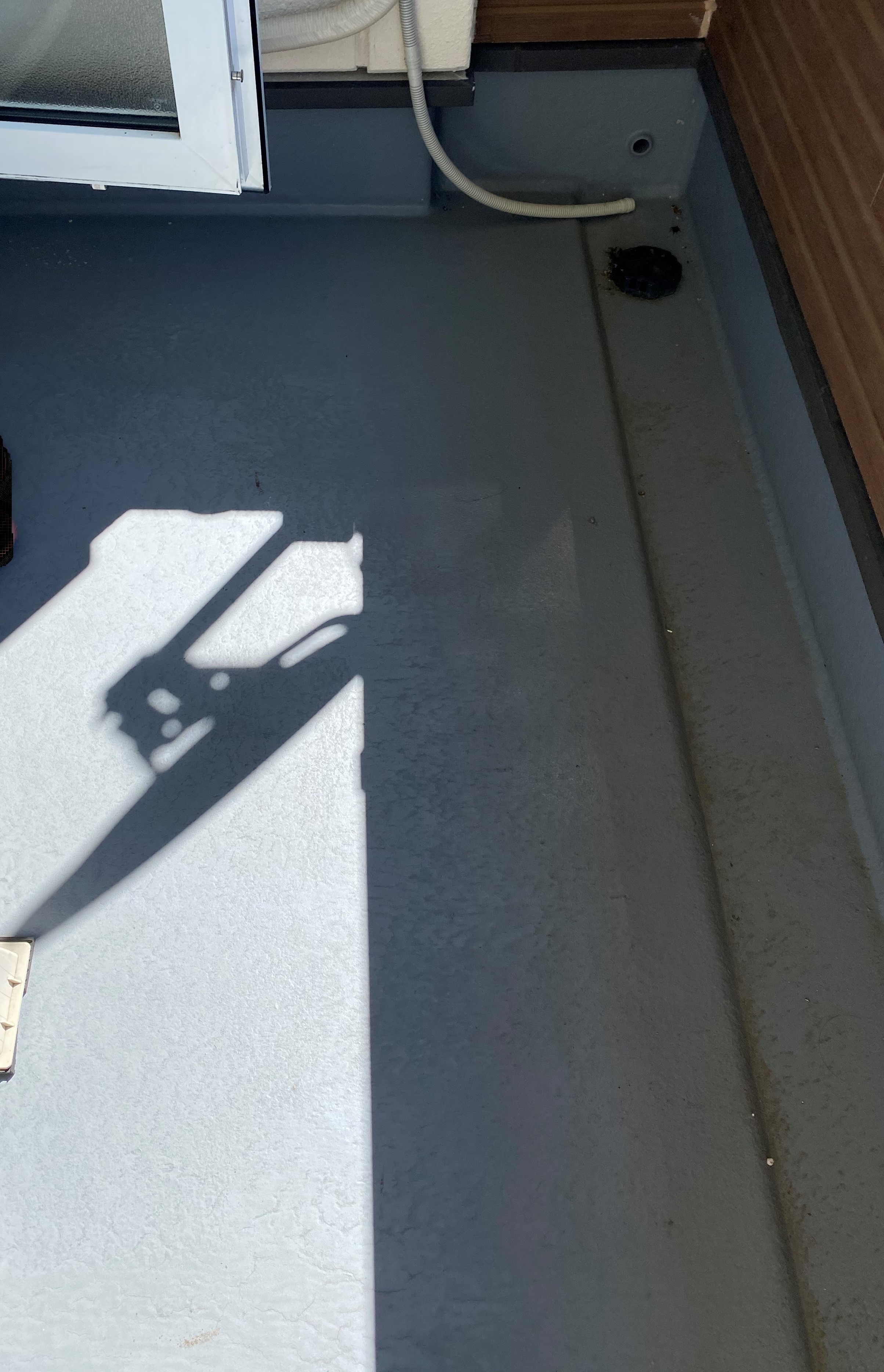 防水工事:ウレタン塗膜防水通気緩衝工法 防水をして、ベランダがスッキリとしたように見えます。 これからも雨漏りの心配もなく、安心です。