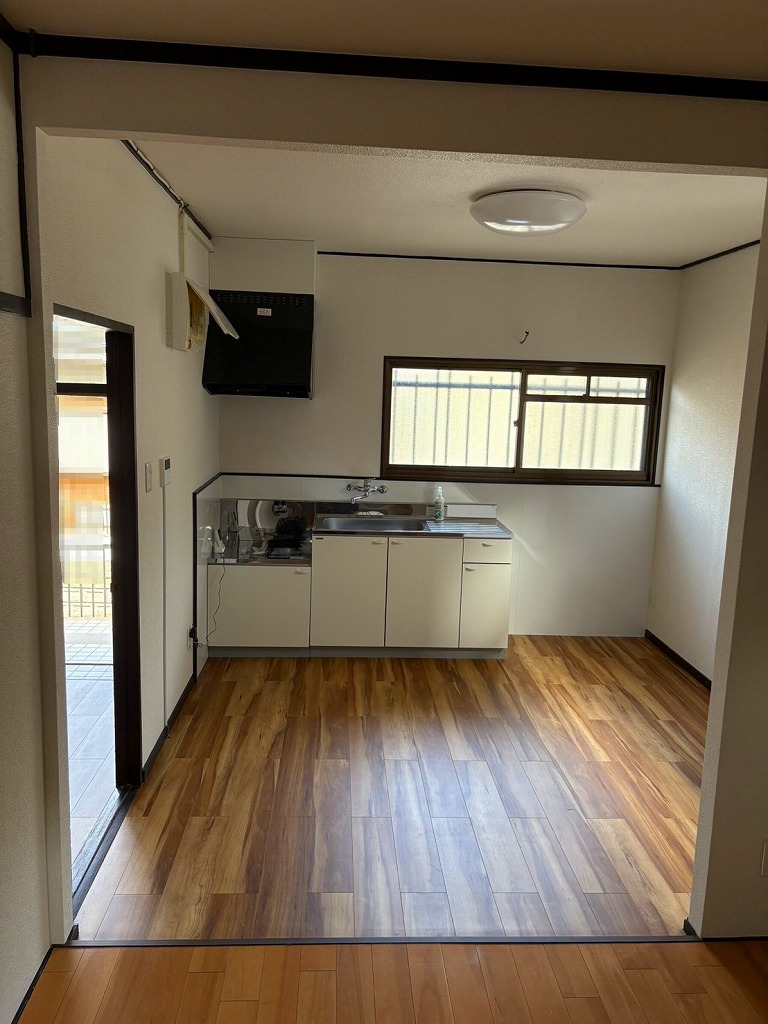 キッチンの内装工事を行いました。 壁も白にし、統一感が出ました。レンジフードも新しくなり、スッキリしましたね。 床も張替え、ピカピカのキッチンに生まれ変わりました!