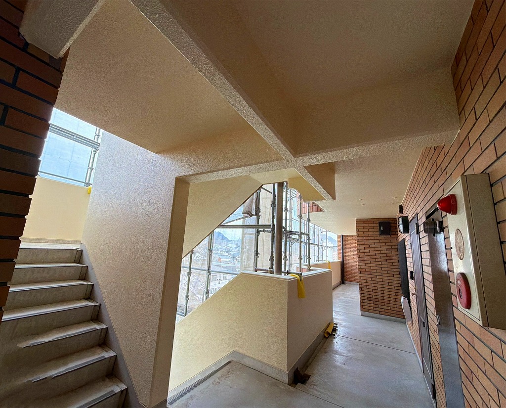 タイルの補修を行うことにより、居住者の方が安心して生活を送ることが出来ます。共用部も塗装することにより、綺麗になって気持ちがいいですね。