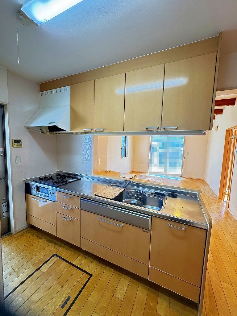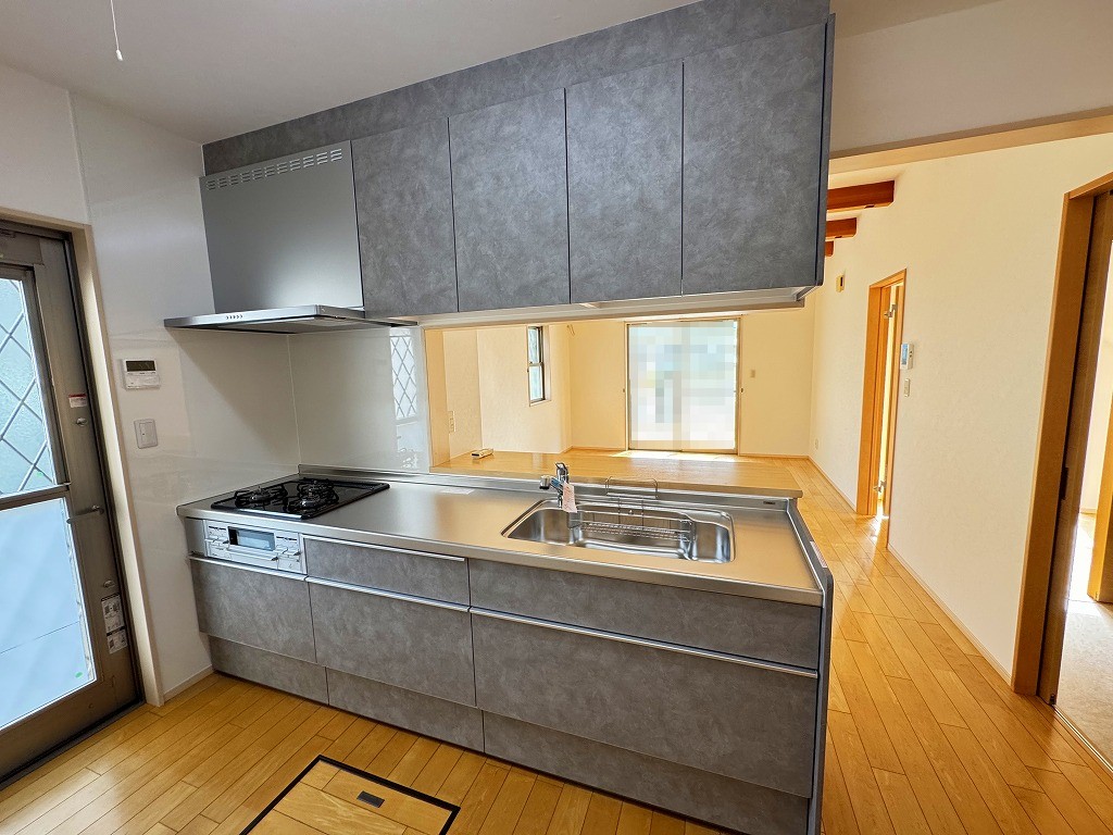 内装リフォーム工事をしました。 キッチンの色と、洗面所の床の色見を合わせ、スタイリッシュな印象になりました。調理の作業スペースも広くなり、使いやすくなりました。シャワーヘッドも取り替え、気持ち良く生活が送れますね♪