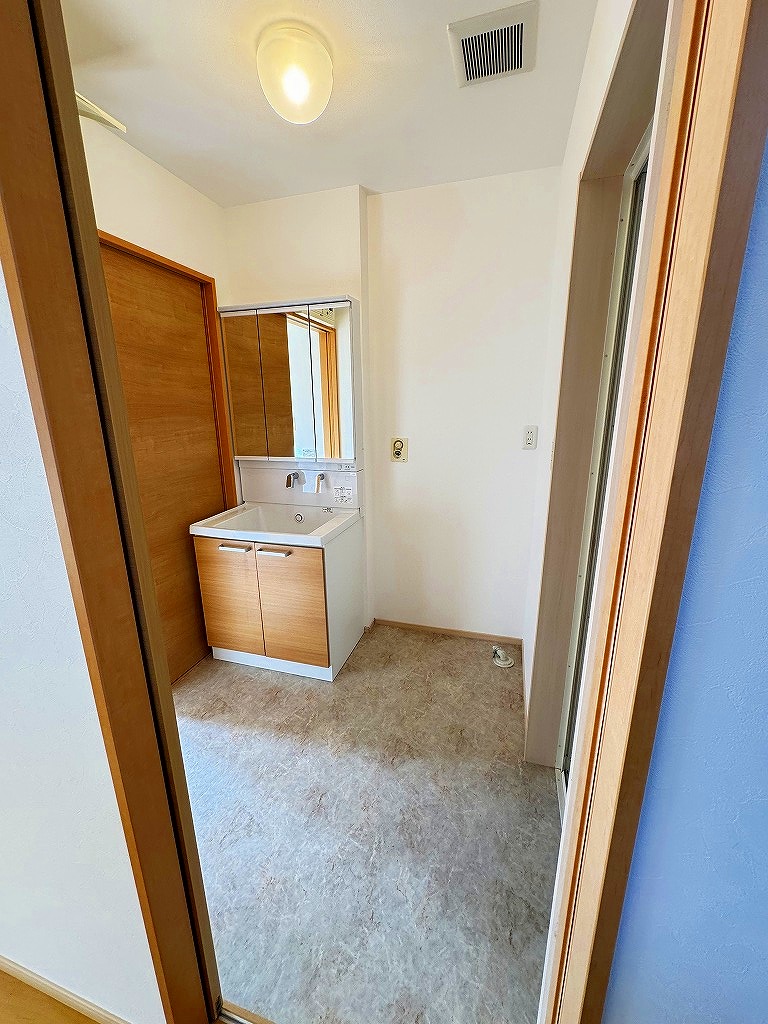 キッチンの色と、洗面所の床の色見を合わせ、スタイリッシュな印象になりました。調理の作業スペースも広くなり、使いやすくなりました。シャワーヘッドも取り替え、気持ち良く生活が送れますね♪