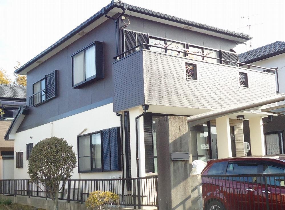 外壁塗装:フッ素塗料 上の階を暗いお色、下の階を明るいお色を変えて印象も変わり、お客様にも喜んでいただけました!!