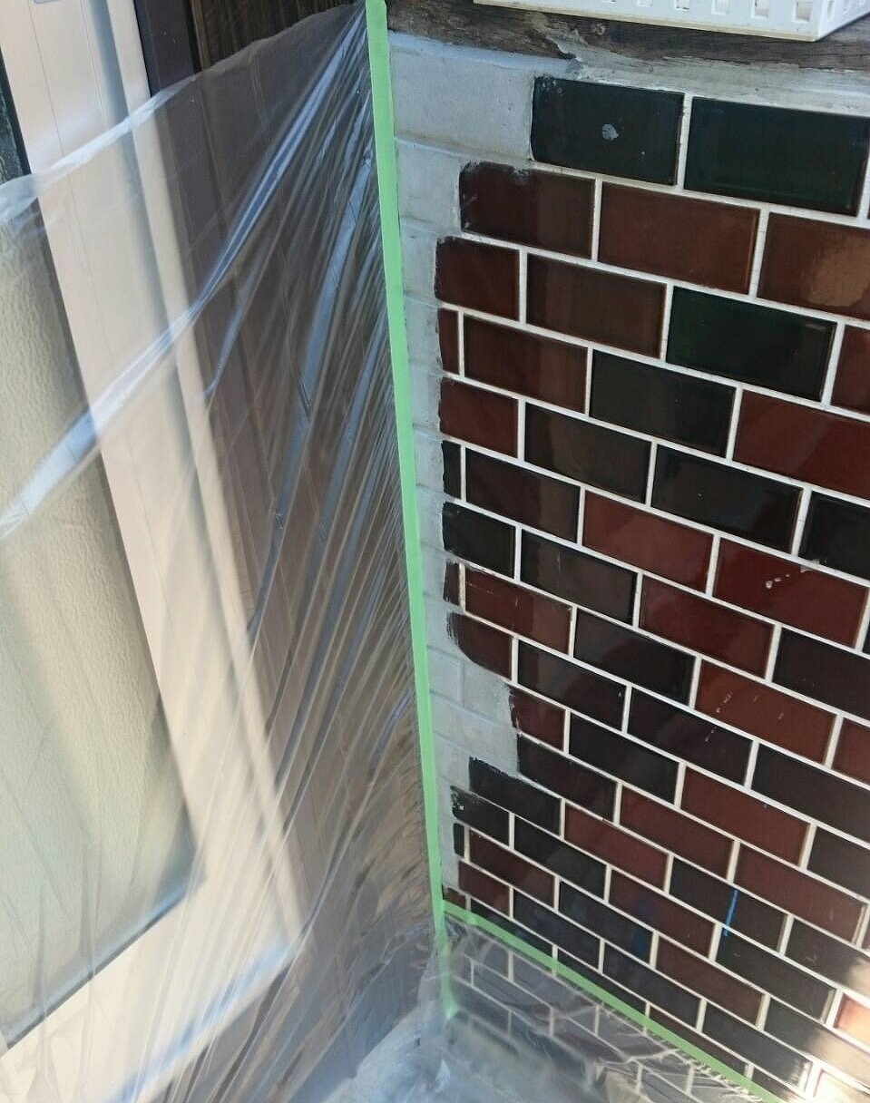 こんなこともできます!! タイルの塗装補修! コンクリ部分に塗装でタイルのお色に近いお色を配合して塗装致しました! 塗装でここまで近いお色に仕上げる技術も備わっています!!