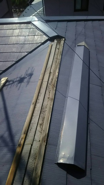 屋根の棟板金が外れてしまっていて、中を確認したところ、下地が傷んでいた為下地も全て交換致しました。